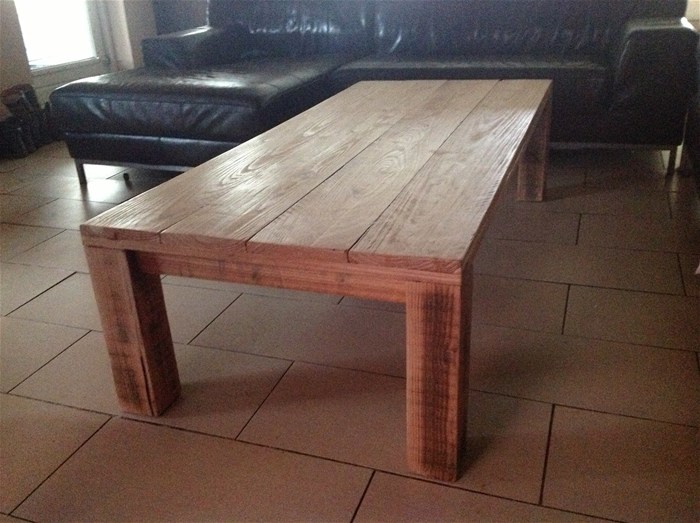 Larikshouten salontafel te koop ,Blankgelakt.