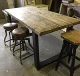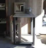 Hoge tafels combinatie staal / dikke oude balken 5cm of gebruikt steigerhout 3cm behandeld met notenlak / onbehandeld/ wit etc. naar wens.