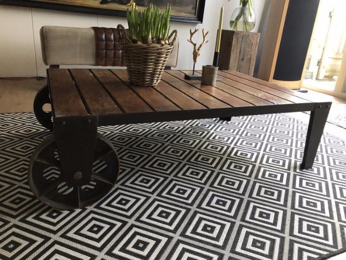 Stoere industriële salontafel, uniek dus maar 1 x te koop
