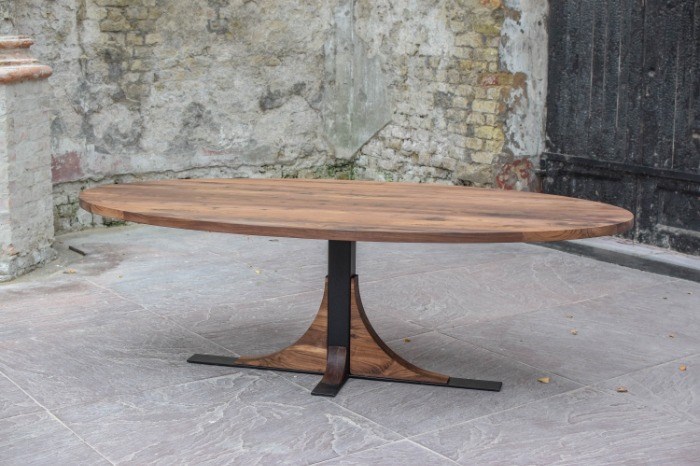 De ovale tafel Frjemd is voorzien van een schitterende pootconstructie van metaal & hout. Tafel Frjemd is afgeleid organische vormen uit de natuur. Een opvallende verschijning in uw interieur. De tafels worden geheel in onze eigen meubelfabriek gemaakt door een team van getalenteerde meubelmakers.