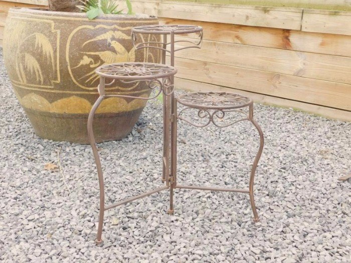 Leveringsomvang: 1 bloementrap, antiek-bruin, smeedijzer.