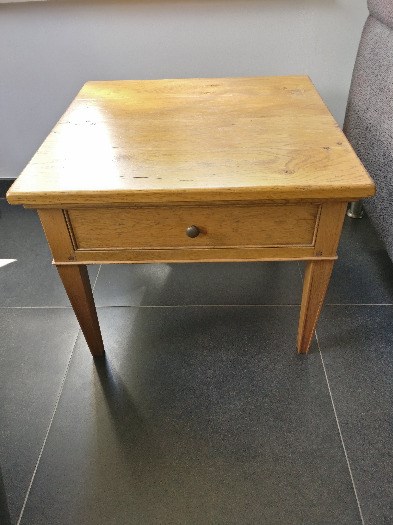 Prachtig afgewerkte side table van eikenhout, voorzien van lade.