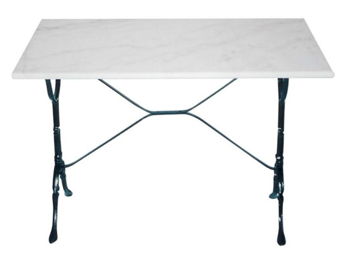 Rechthoekige marmeren tafel met gietijzer onderstel.