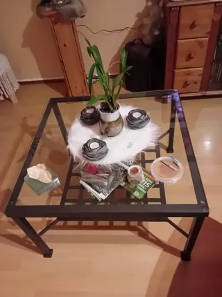 Salontafel aangeboden metaal met glas in goede staat, 68x68 cm. Opbrengst gaat naar goede doel
