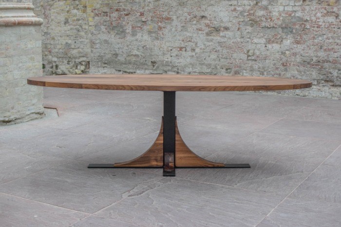 De ovale tafel Frjemd is voorzien van een schitterende pootconstructie van metaal & hout. Tafel Frjemd is afgeleid organische vormen uit de natuur. Een opvallende verschijning in uw interieur. De tafels worden geheel in onze eigen meubelfabriek gemaakt door een team van getalenteerde meubelmakers.