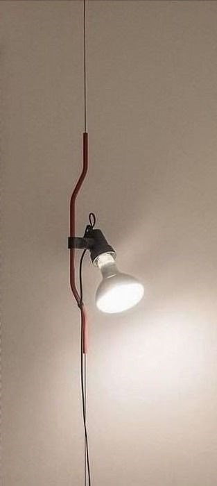 De verticale beweging van de armatuur wordt bereikt door een geprofileerde stalen buis, vloeibaar geverfd, langs een stalen kabel te schuiven die van het plafond naar de vloer loopt (bruikbare lengte: 400 cm).
