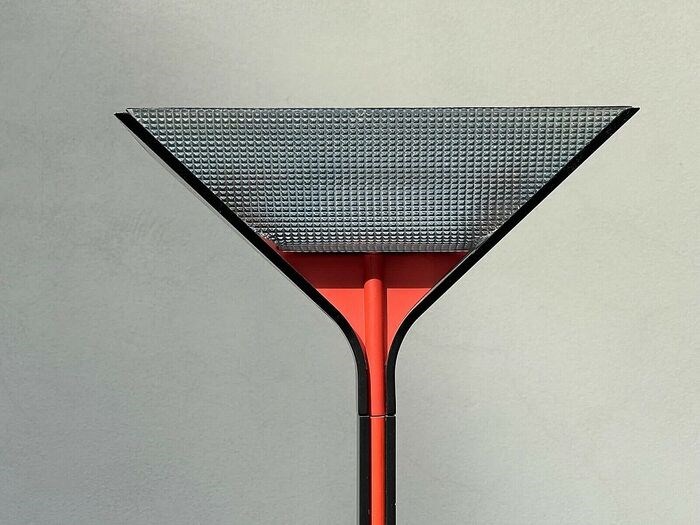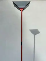 Flos Papillona Dimmer is een vloerlamp met een bijzonder slanke steel, met een eenvoudig en modern design, hier gepresenteerd in de zwarte en rode versie.