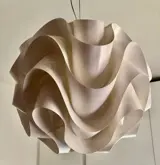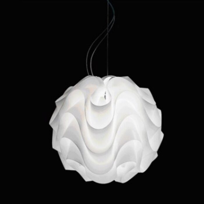 Een eigentijdse heruitgave van de beroemde plastic Le Klint-lamp van de Deense Poul Christiansen, de Spumone-ophanging stelt zijn spectaculaire geplooide diffusor opnieuw voor. De operatie is ondertekend door Davide Groppi en Alberto Zattin, die een echte lichtgevende, luchtige en delicate compositie creëren in zacht PVC als een textieldecoratie. Het is een dunne, ononderbroken plaat die volgens golvende golven is gevouwen tot een ingewikkelde bolvorm met gegolfde oppervlakken. Het interne licht wordt afgeschermd door de op elkaar geplaatste lagen en verspreid tussen de plooien, met verfijnde clair-obscur-effecten. Succesvolle en cultserie voor het merk uit Piacenza, Spumone is geselecteerd voor Pulchra, de wedstrijd van de 100 mooiste objecten ter wereld. Naast de pendelversie is hij verkrijgbaar in de tafel- en vloerversie.
