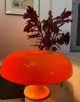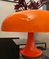 De iconische Nesso is een symbool van innovatief en organisch design uit de jaren 60. De grote parapluvormige diffusor en de basis zijn gemaakt van ABS-hars in wit of oranje en spuitgegoten in verchroomde vormen. De emissie, verzekerd door vier verborgen lampen, wordt direct en diffuus geproduceerd dankzij het afschermende effect van het plastic materiaal. Nesso maakt deel uit van de permanente collectie van het MoMA in New York.