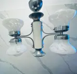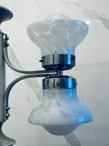 Een prachtige AV Mazzega plafonnière uit de jaren 70 met mondgeblazen Murano glazen kap, in goede staat met wat lichte ouderdomssporen, mooi en modern (voor beschrijving zie foto's).