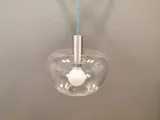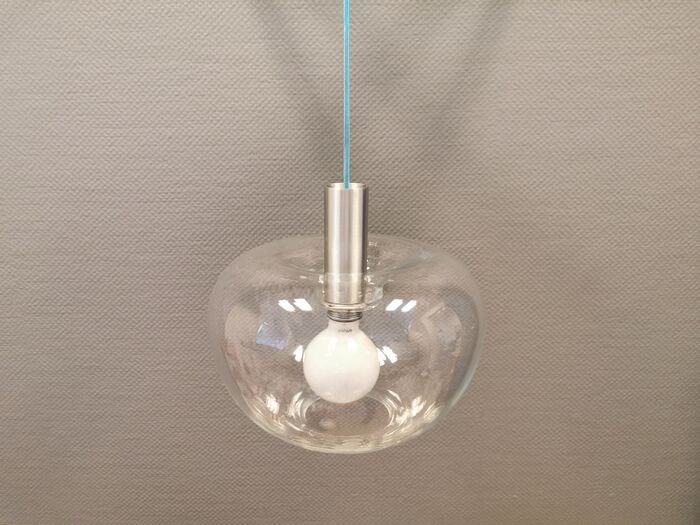 Zeer bijzondere hanglamp van het Zweedse Belid, met grote glazen koepel als kap, met aluminium details.