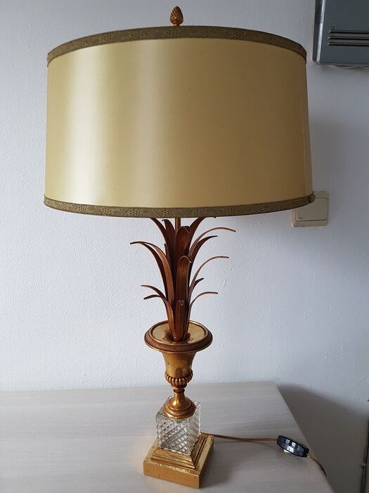 Hollywood Regency bureaulamp in de vorm van een ananasblad, verguld messing en kristal,