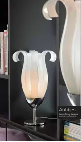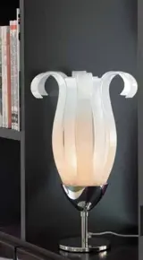 Tafellamp in glanzend wit glas met chromen structuur en afwerkingen,