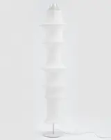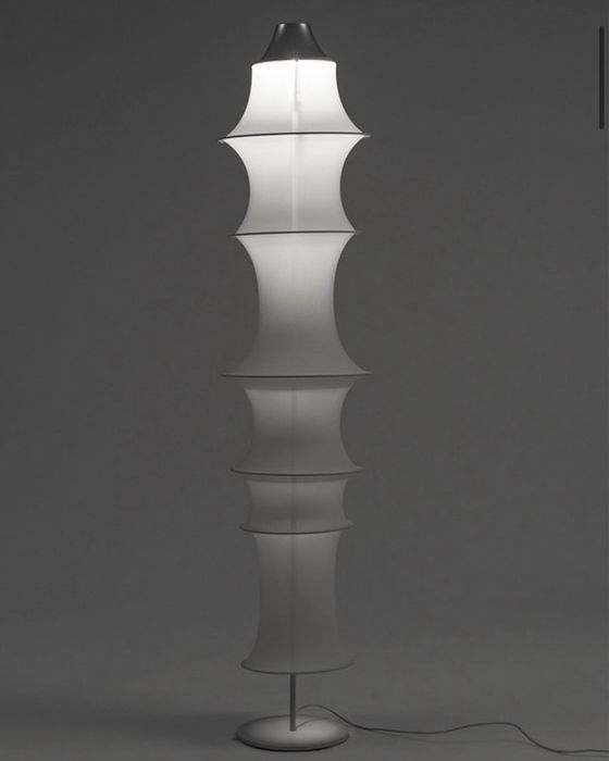 Bruno Munari, 1964. Vloerlamp Diffuser in elastische witte buisvormige schakel, structuur in gelakt staal.