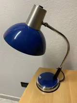 Bureau- of tafellamp uit de jaren 70-80 in staal en metaal, Made in Italy, hoogte 50 cm, de parabool heeft een diameter van 22 cm, de voet heeft een diameter van 16 cm, de lamp is helemaal origineel, hij was alleen bedraad en stekker gemaakt in overeenstemming met de EU-normen. Mooi