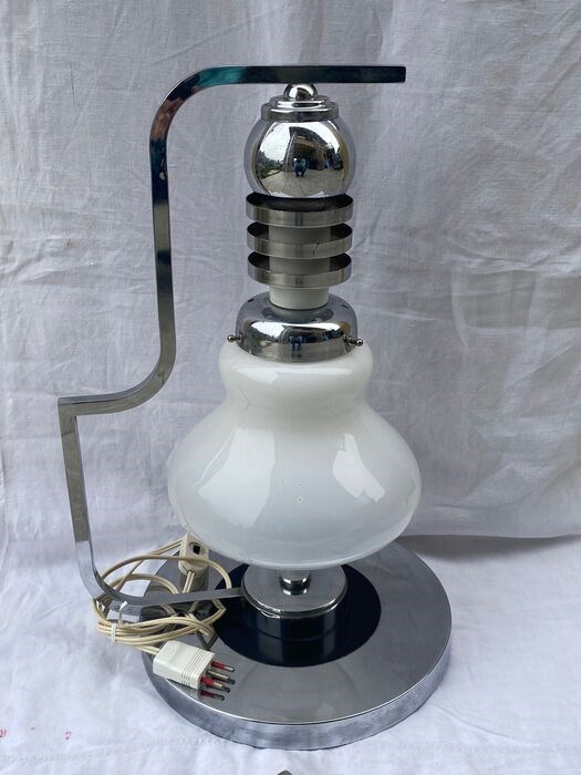 Zeer zeldzame lamp in perfecte staat in geblazen glas en staal ... object met een grote visuele impact en erg mooi als decor.. uit de jaren 50, allemaal origineel en functioneel.. zeer zeldzaam object..