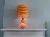 In kleurstelling en vormgeving is dit een typische lamp uit de jaren 60. Het glas is mondgeblazen en geproduceerd door de Belgische glasfabriek De Rupel N.V. in opdracht van de verlichtingsfabrikant Massive. De voet is gemaakt van geanodiseerd aluminium met daarop een drukschakelaar. Het bijzondere aan deze lamp is dat zowel de kap als de voet onafhankelijk of gelijktijdig kunnen worden verlicht. De lamp is in originele staat en verkeert voor zijn leeftijd in zeer goede conditie.