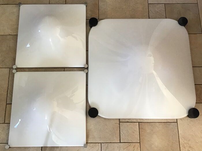 2 Maatregelen 60x60h. 19cm. Gewicht 5,7 LET OP die van 85x85 cm. Gewicht 11kg. alles origineel inclusief 2 ronde lampen op 60x60 lampen zijn uitgesloten de 4 foto's zijn de lampen die je nodig hebt om warm of koud licht te nemen, maar in de 85x85 zijn de ronde lampen gratis ... er zijn zeer kleine onbeduidende tekenen van veroudering ze zijn 95% uitstekend, de laatste 4 foto's zijn gerepareerd omdat de kunststoffen gaar zijn en niet meer te vinden zijn, het werkt hoe dan ook en is niet te zien, ik stuur de collectie niet eerder met de hand naar mijn huis in Parabiago (Milaan) wegbrengen Zet ze op catawiki: afgehaald door de klant.. verpakking voor uw rekening