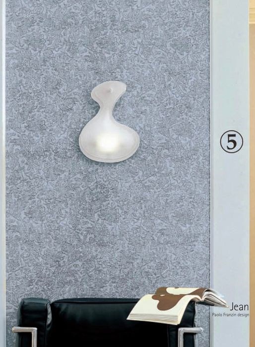 Wandlamp in extra helder gesatineerd glas met afwerkingen in witte verf