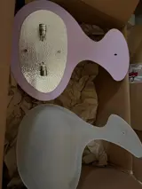Wandlamp in extra helder gesatineerd glas met afwerkingen in lila verf.