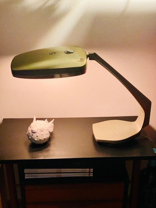 Zeer decoratieve GEI lamp, hij vertoont gebruiks- en tijdsbeschadigingen zoals te zien op de foto's, verder zijn alle onderdelen origineel en werkt hij perfect.
