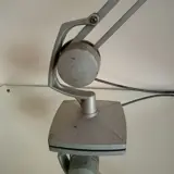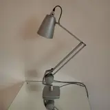 Aluminium bureaulamp van Hadrill en Horstmann uit het Verenigd Koninkrijk. Hij is gemaakt van aluminium en staal met een nieuwe chromen lamphouder in bajonetstijl. In goede gebruikte staat en houdt goed op zijn plaats - dit wordt gedaan met de borgmoeren. Er zijn wat kleine deukjes in de schaduw en wat roest aan het lakwerk.