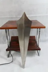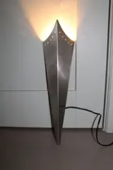 Deze gave vintage wandlamp komt uit eind jaren 70. De lamp is een driehoek van metaal en straalt licht uit van bovenaf. Ook zitten er kleine openingen aan de voorkant waar zacht licht doorheen komt. De lamp is geschikt voor een E14 fitting.