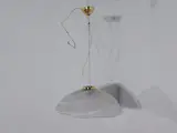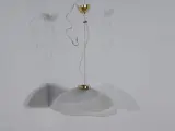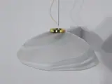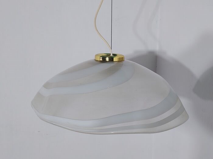 Suspensie, geproduceerd in Italië, in de jaren 70 / 80, glas van royale dikte, met strepen in melkachtig glas, van Murano-productie; messing metalen structuur met verstelsysteem met staalkabel.