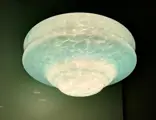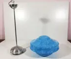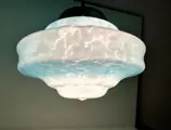 INFO: Schitterende en authentieke jaren 30/40 Art Deco plafondlamp. De lamp heeft een prachtig en zeldzaam lichtblauw en wit omhuld opaline artistiek glas met een betoverend lichtgevend en visueel effect (foto). De structuur is origineel aluminium in elk onderdeel! Een buitengewone en unieke kroonluchter!