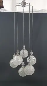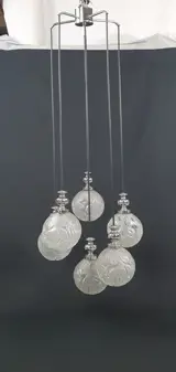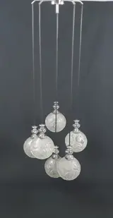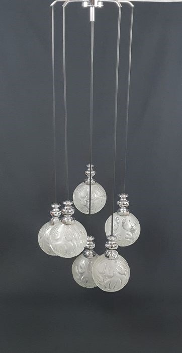 Met zes zeer mooie en decoratieve zware massief glazen bollen gedecoreerd met Chromozot