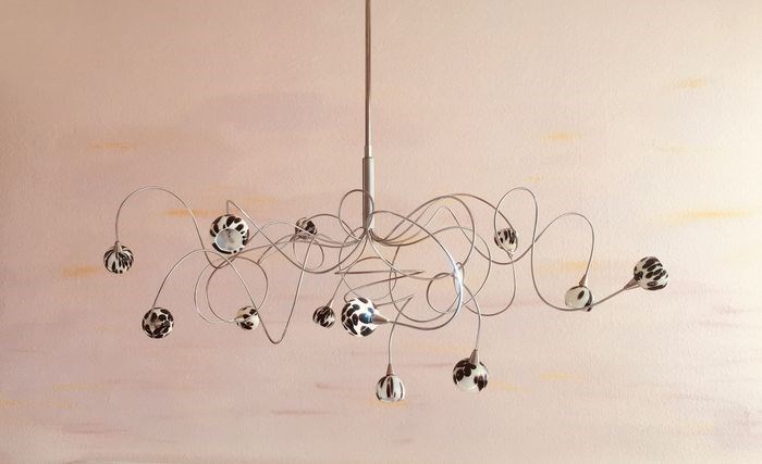 Kleur - crème-wit met een taupe-bruin-zwart patroon.