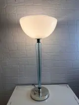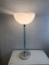Tafellamp, de basis van het ontwerp is verchroomd metaal dat evolueert naar de delicate reflecties van de geblazen glazen voet