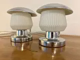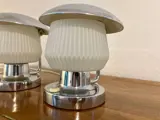Nachtkastjes in jaren 50 Bauhaus/modernistische stijl, ontworpen door Josef Hurka, uitgevoerd door Napako-15 als model 1195 in verchroomd staal met glazen kappen. De onberispelijke staat van het chroom is zeldzaam, die van de glazen kappen is uitzonderlijk.