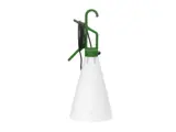 Multifunctioneel verlichtingstoestel geschikt voor plaatsing buitenshuis. Haak/handgreep, die ook dienst doet als kabeloproller, en een spuitgegoten opaline conische diffusor gemaakt van duurzaam polypropyleen geproduceerd uit industrieel procesafval. Knopschakelaar op het handvat. De lichtbron wordt beschermd tegen weersinvloeden door een transparante luchtdichte capsule gemaakt van verzegeld polymethylmethacrylaat met een elastomeer pakking die helpt om een beschermingsgraad van IP 65 te bereiken. Omdat er geen lijm wordt gebruikt bij het montageproces, is Mayday eenvoudig te demonteren, zodat elke een deel goed kan worden gerecycled.