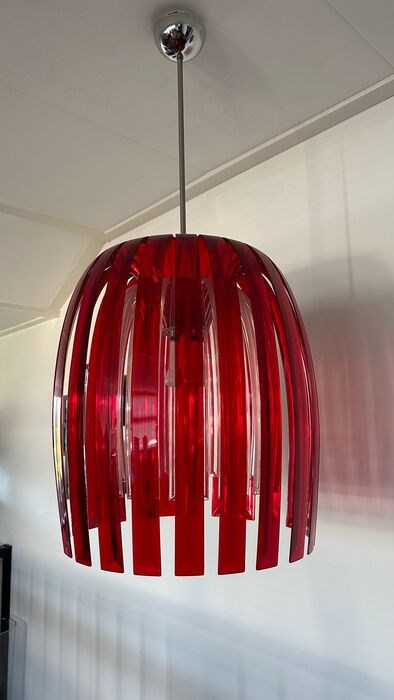 Mooie dubbele hanglamp Koziol Josephine XL. Kleur Rood en transparant