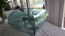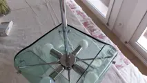 In gerookt blauw glas en staal met 4 lampen