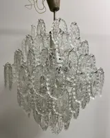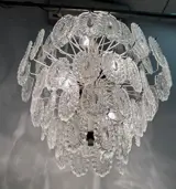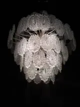 Mooie hanglamp gevormd door een metalen structuur waarin 92 ovale kristallen met reliëf zijn verwerkt.