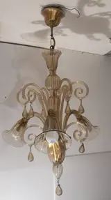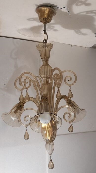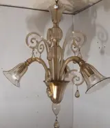 Kroonluchter 3 lichts in amberkleurig Murano glas