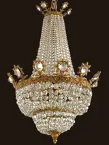 Lamp in klassieke stijl heeft een verscheidenheid aan kristallen, gesneden in massief brons. In de koepel bevinden zich veel kristallen die worden vastgehouden door meerdere rijen brons die zich in een wereldbol sluiten en het resultaat is indrukwekkend. Een zeer decoratief stuk, elegant, stijlvol en moeilijk te vinden.