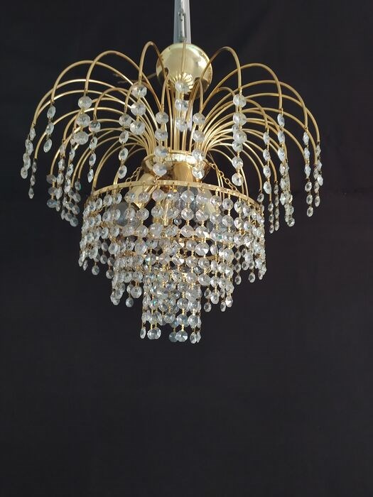Hanglamp, gemaakt van messing en glazen tranenkroonluchter