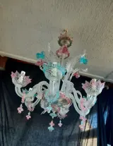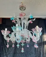 Kroonluchter met 6 lampen in harlekijn Murano glas.