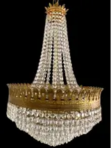 Spectaculaire kroonluchter met achthoekige kristallen in transparante Roca-kleur. Een zeer elegant ontwerp met zijn prachtig gebeeldhouwde randen aan beide kronen en op de centrale koepel, er zijn een veelheid aan kristallen.