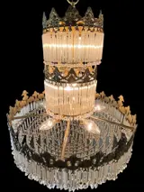 Antieke Kroonluchter met buisvormige kristallen, bewerkt door Ladybombom2017 gesneden met drie kronen
