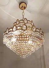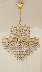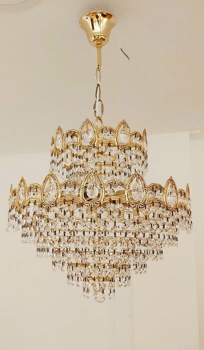 De afmetingen zijn: lengte 70cm inclusief ketting. doorsnee 42 cm. Zijnde het grootste deel en het kleinste deel 7cm