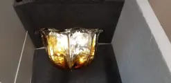 Glasverwerking volledig handgemaakt; presenteren handelsmerk en handtekening "La Murrina". Er is ook een garantiecertificaat "La Murrina" om de authenticiteit en waarde van het artikel verder te bevestigen.Presenteer handtekening La Murrina op het glas.