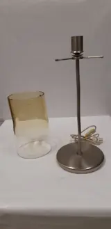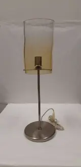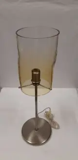 De prestigieuze tafellamp "Flex/P" van "La Murrina" is gemaakt van transparant glas met een amberkleurige tint. Het frame is van satijnnikkel.