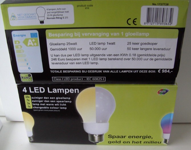 LED LAMP 4 LAMPEN PER DOOS ENERGIE ZUINIG WAT “LED” JE!