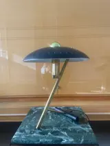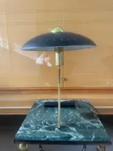 Deze variant is bijzonder zeldzaam. Er zit geen koperen ring op het contragewicht en de voetarm is cilindrisch in tegenstelling tot de latere versies waar deze vierkant is. Lamp is in erg goede staat, zie foto's.