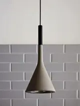Een speciaal, exclusief geformuleerd beton speelt de hoofdrol in de Aplomb lampen, een model dat verfijning combineert met textuur om een geconcentreerde lichtstraal naar beneden te werpen.