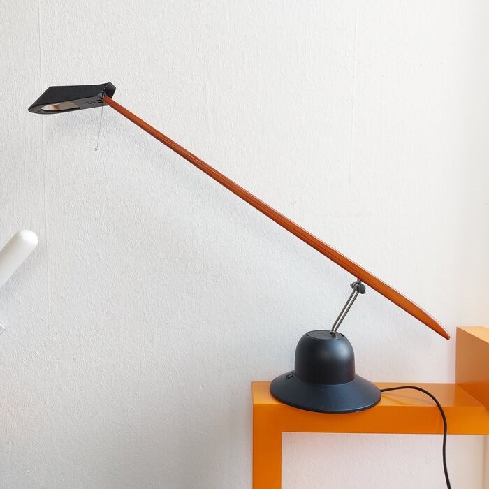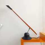 Luxe ogende bureaulamp van massive. Gemaakt van hout en mat zwart plastic. De slanke vorm en het hout maken dat de lamp chique en modern oogt. Een echte eyecatcher op een bureau of dressoir.